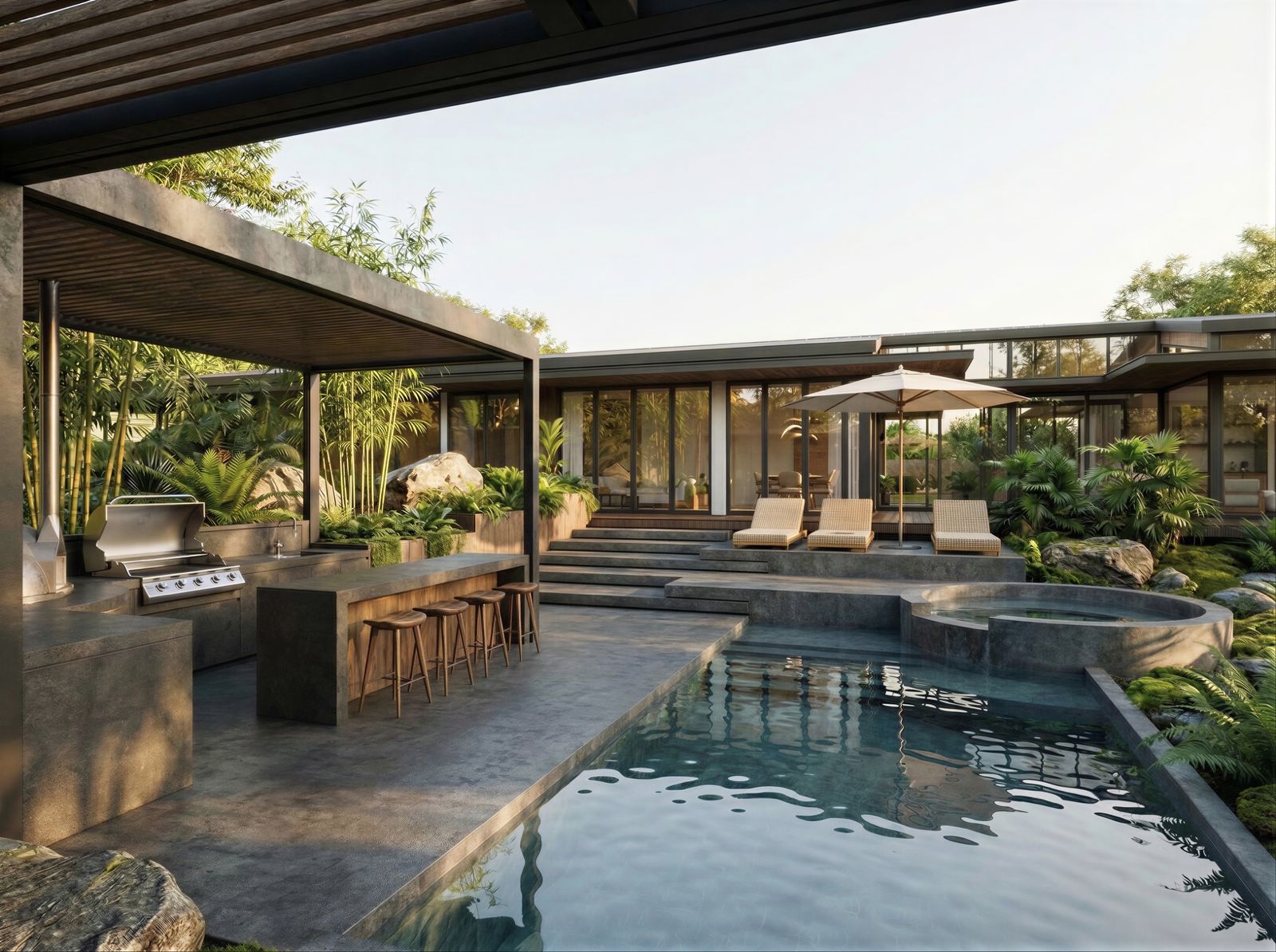 Full-scope design and development of a private summer residence for a high-net-worth client in Cieneguilla, Peru. A custom 600 sqm home set across a generous exterior of 200 sqm, designed from the ground up to respond to the site’s topography, climate, and the client’s program. The project is being managed from concept through construction and delivery.